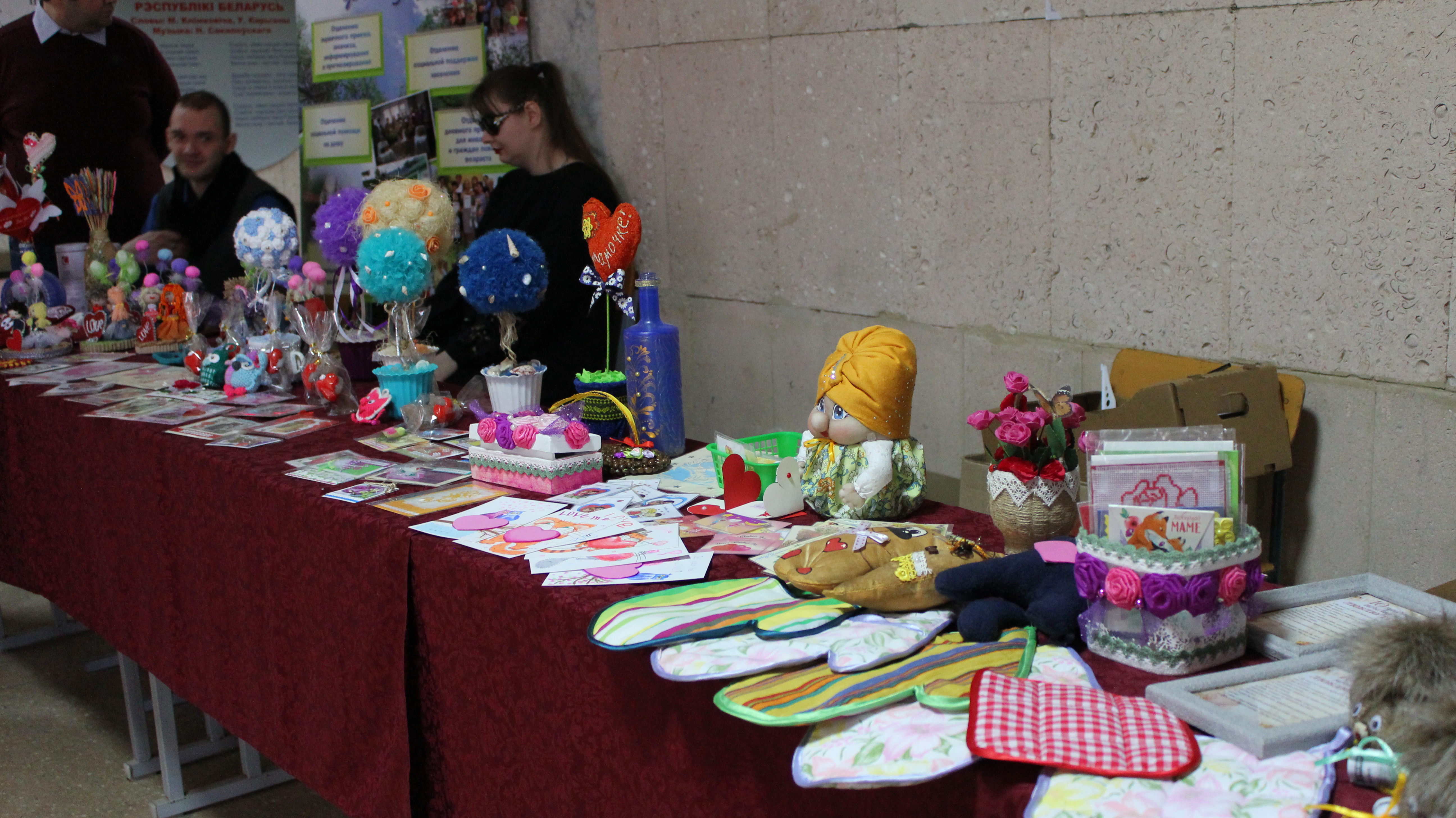 Специалистами отдела по воспитательной работе с молодёжью совместно с сотрудниками отделения дневного пребывания для инвалидов учреждения «Территориальный центр социального обслуживания населения Мозырского района» была организована выставка-ярмарка творческих работ, изготовленных людьми с ограниченными возможностями: праздничные открытки, сувениры и поделки ручной работы.