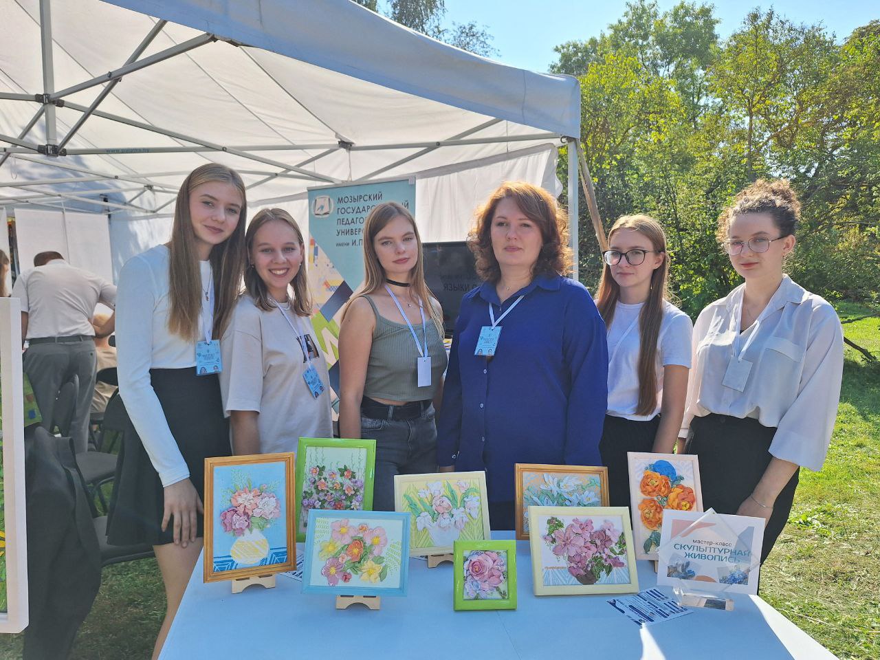 Наши студенты при поддержке Совета молодых учёных университета представили участникам и посетителям фестиваля игровой дидактический комплекс «Мой безопасный Мозырь», демонстрирующий инновационные приёмы работы воспитателя с детьми дошкольного возраста (Шерстобитова Анна, Боричевская Александра), интерактивную игру «Мы изучаем иностранные языки» – room-tour по МГПУ им. И. П. Шамякина с использованием лексики английского и немецкого языков (Шевель Ангелина, Шевчук Карина) и провели мастер-класс «Скульптурная живопись», направленный на знакомство с особой техникой, позволяющей создавать объемные красочные картины на различные сюжеты (Былицкая Виктория).