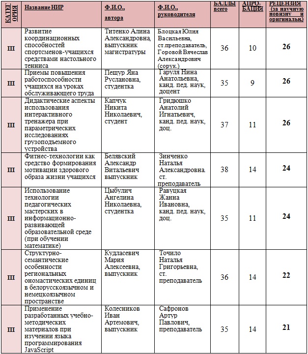 III–категорией отмечены 7 работ следующих студентов (выпускников):