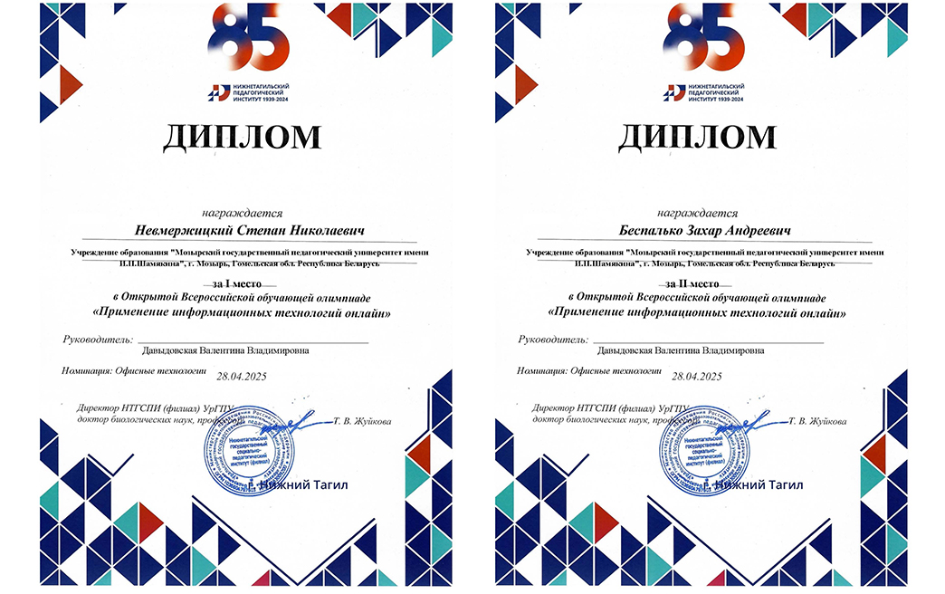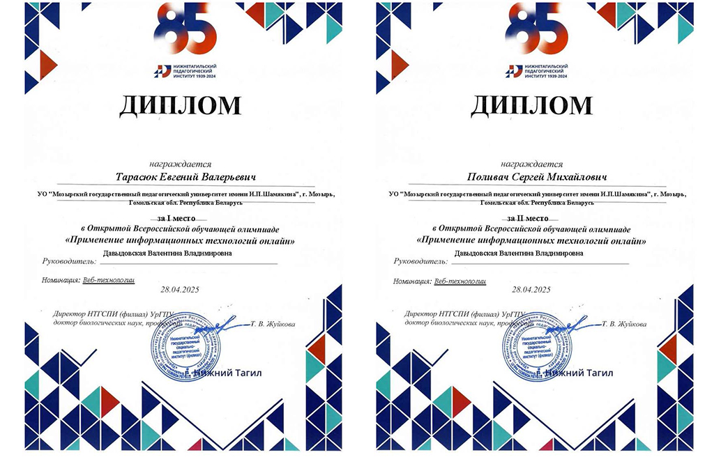 Очень хорошо проявили себя первокурсники. Так, в направлении «офисные технологии» Невмержицкий Степан (1 к. 1 гр.) был удостоен Диплома I степени, Беспалько Захар (1 к. 1 гр.) - Диплома II степени; в направлении «веб-технологии» Тарасюк Евгений (1 к. 2 гр.) также был удостоен Диплома I степени, а Поливач Сергей - Диплома II степени!