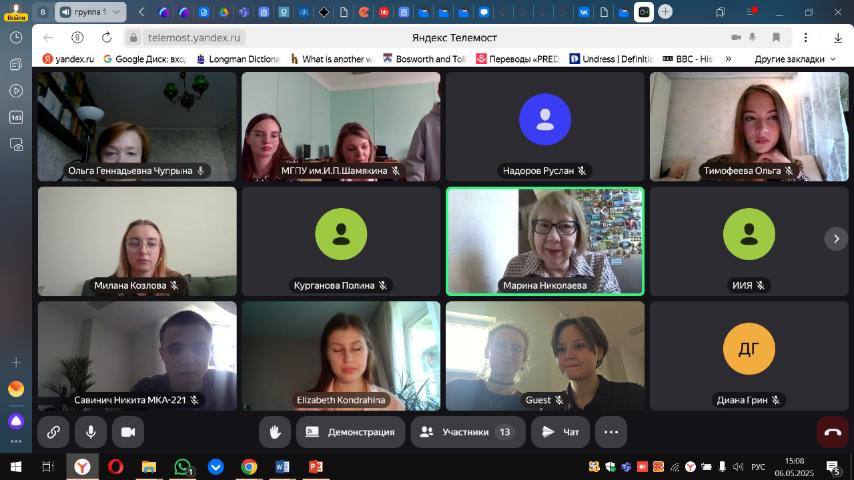 Традиционное открытое заседание студенческой лингвистической лаборатории «Эврика» кафедры английской филологии (ИИЯ МГПУ, Москва, Российская Федерация, научный руководитель – М.Н.Николаева, кандидат филологических наук, доцент) и студенческой научно-исследовательской лаборатории «Лингвист» кафедры иностранных языков и методики преподавания иностранных языков (УО МГПУ им. И.П. Шамякина, Мозырь, Республика Беларусь, научный руководитель – Е.В.Ковалёва, кандидат филологических наук, доцент) состоялось для студентов-исследователей в завершении учебного года.