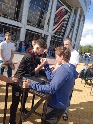 29 июня 2025 года на площадке ФОЦ «Полесье-Арена» спортивный клуб УО МГПУ им. И.П.Шамякина принял участие в праздновании Дня молодежи и студенчества. В рамках работы интерактивных площадок Спортклуб организовал состязания по армреслингу.