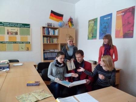 На кафедре немецкого языка и МПИЯ состоялся день открытых дверей. Программа дня открытых дверей включала: встречу учащихся с преподавателями кафедры немецкого языка и МПИЯ, общение со студентами 5 курса, тестирование лексико-грамматических навыков и речевых умений, индивидуальные консультации по грамматике.
