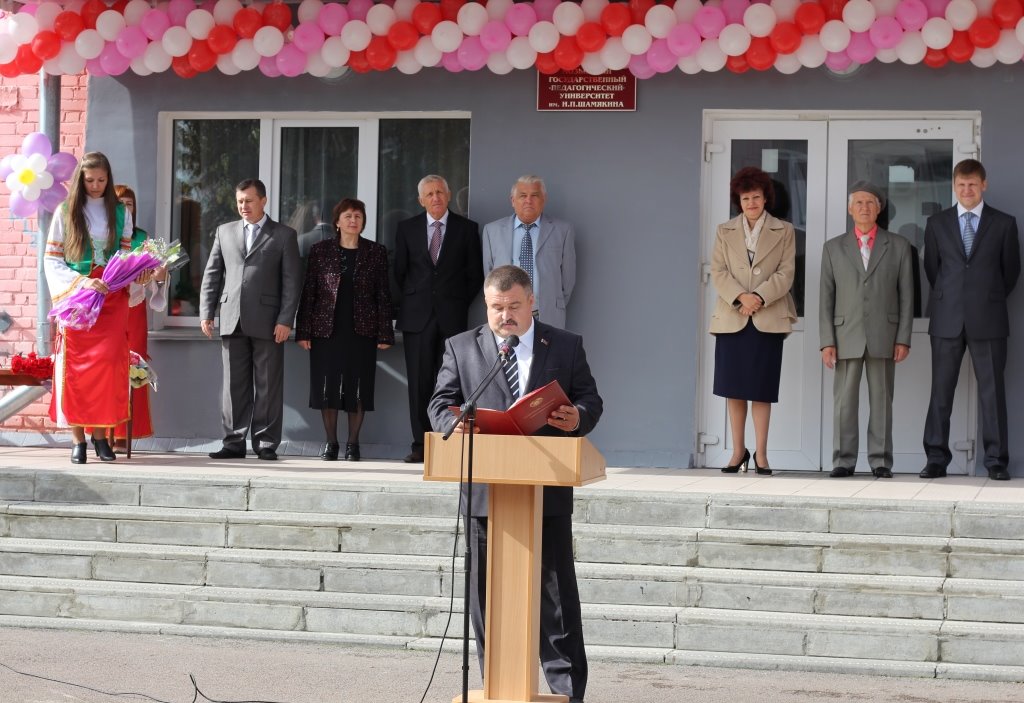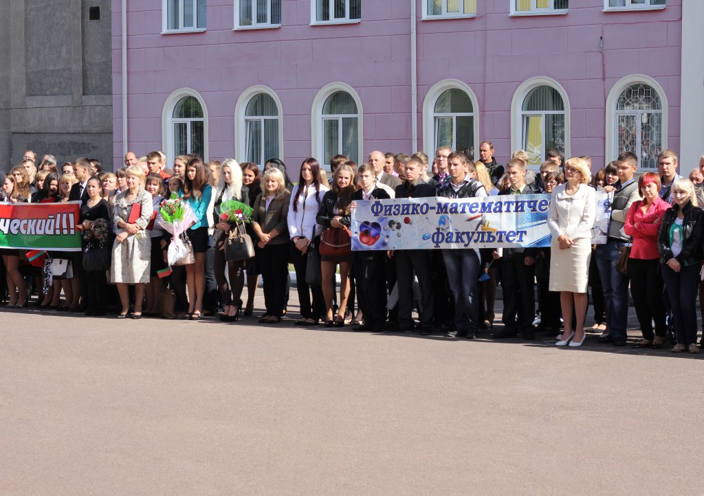 Торжественную линейку, посвящённую Дню знаний, традиционно открыл ректор университета, профессор В.В. Валетов. Валентин Васильевич призвал студентов с настойчивостью и энтузиазмом постигать секреты профессионального мастерства, активно участвовать в научной, культурной и спортивной жизни университета. От Мозырского районного исполнительного комитета всех преподавателей и студентов поздравил председатель Совета депутатов С.А. Гвоздь. С напутственными словами к первокурсникам обратились С.И.Костян, Л.В.Журавская, а также от лица родителей В.А. Чистяков, от имени всех магистрантов и аспирантов Г.В. Крох.