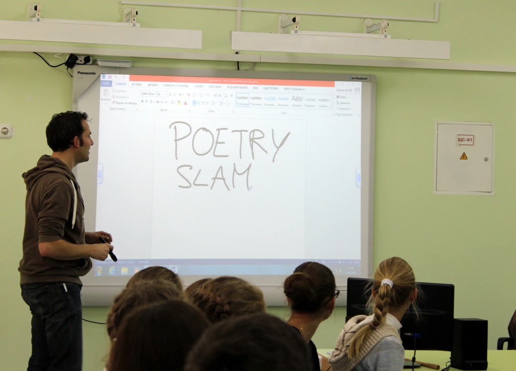 Вначале Филипп рассказал присутствовавшим о так называемом Poetry slam. Этот вид искусства пришел в Германию из США и представляет собой соревнование, в котором участник должен представить стихотворный текст собственного сочинения, написанный за отведенное для этого время. В процессе своего выступления участник не должен использовать никаких вспомогательных средств, кроме своих эмоций, мимики и жестов.