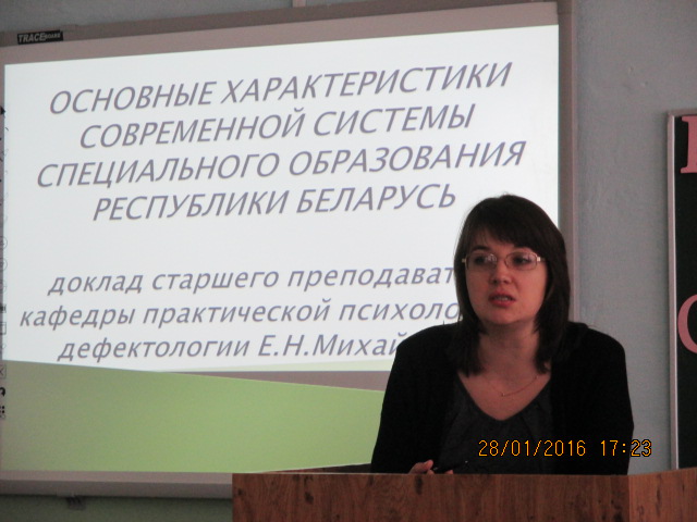 28 января 2016 года на базе учебного корпуса №3 УО МГПУ им. И.П.Шамякина прошел научно-методический семинар “Инклюзивные тенденции в системе специального образования”, подготовленный кафедрой практической психологии и дефектологии.