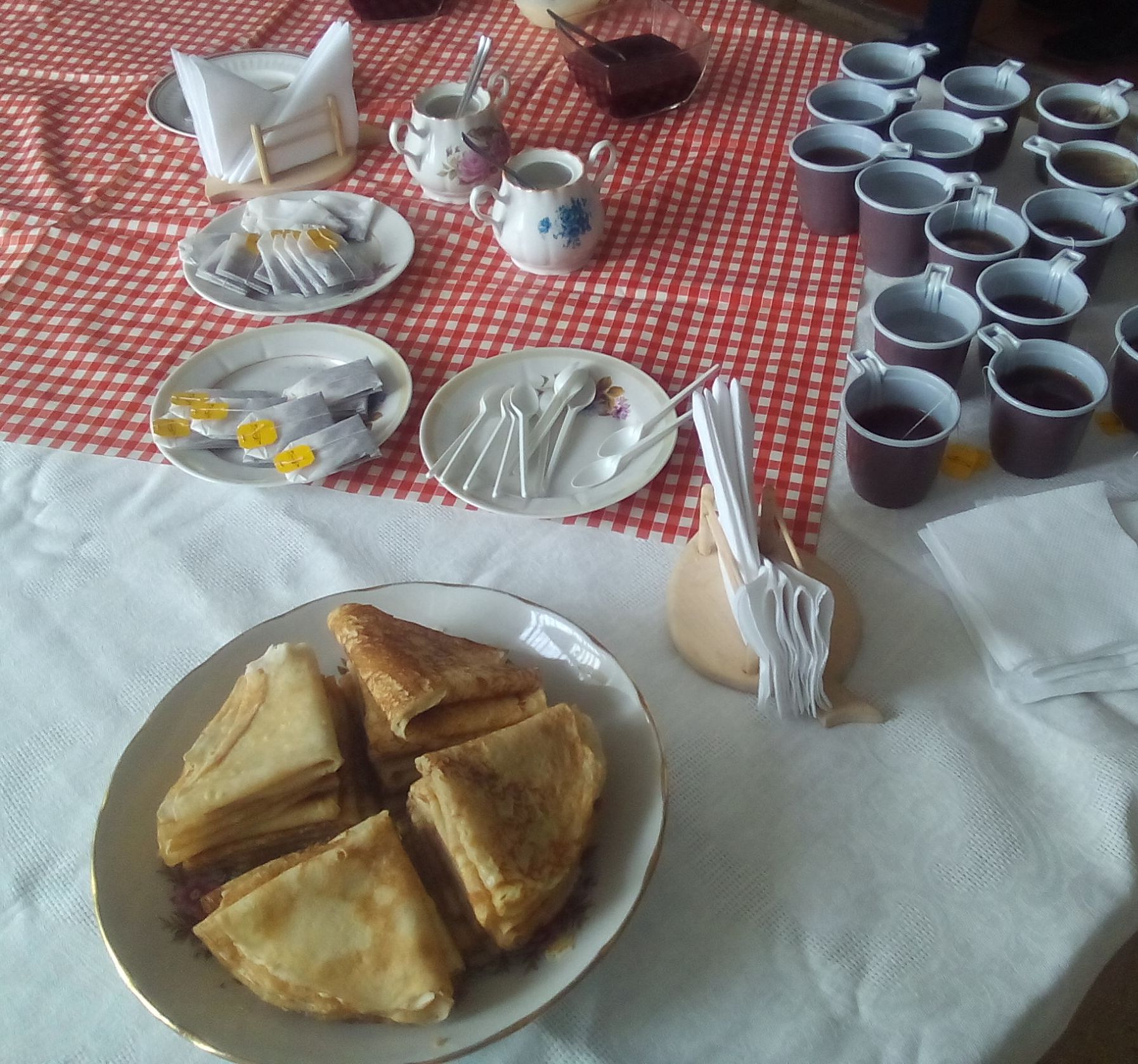 Особый интерес у наших гостей вызвало проведение фрагмента народного обряда «Масленица», в ходе которого можно было не только познакомиться с фольклорными особенностями праздника, но и полакомиться блинчиками, специально приготовленными студентами факультета, а также вареньем и чаем.