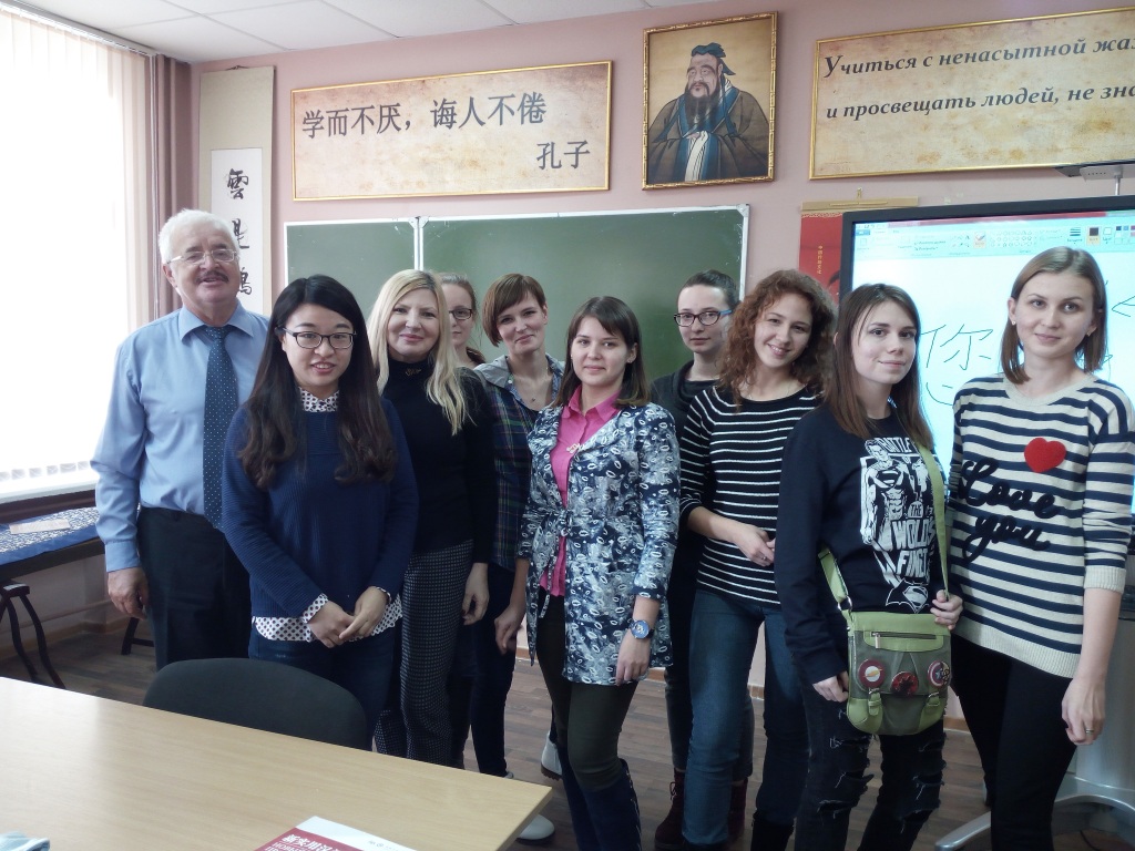 8 ноября группа студентов филологического факультета вместе с куратором, доцентом кафедры белорусской и русской филологии Т.И. Татариновой посетили Кабинет Конфуция РИКК БГУ при Гомельском государственном университете им. Ф. Скорины. Руководитель кабинета доктор филологических наук, профессор, зав. кафедрой русского, общего и славянского языкознания В.И. Коваль провёл интересную экскурсию, познакомив студентов с направлениями работы кабинета, с перспективами его развития. Хочется также поблагодарить преподавателя Чжан Сяохун за возможность присутствовать на занятии по основам китаеведения.