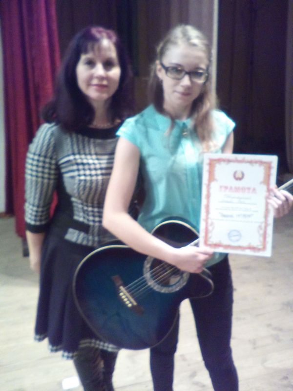 Студенты 1 курса факультета дошкольного и начального образования Жукевич Ольга и Драч Александра (руководитель старший преподаватель Дедковская Е.Г.) приняли активное участие в конкурсной программе. Александра Драч исполнила песню известного автора-исполнителя Булата Окуджавы «Виноградная косточка», а Ольга Жукевич – песню Дениса Дайнеко «Далети».