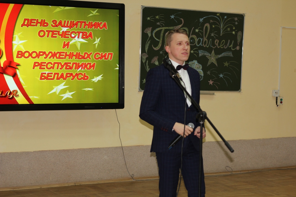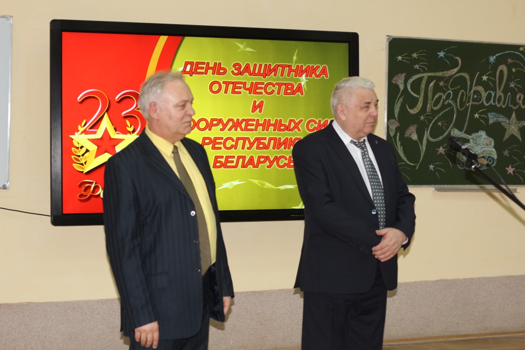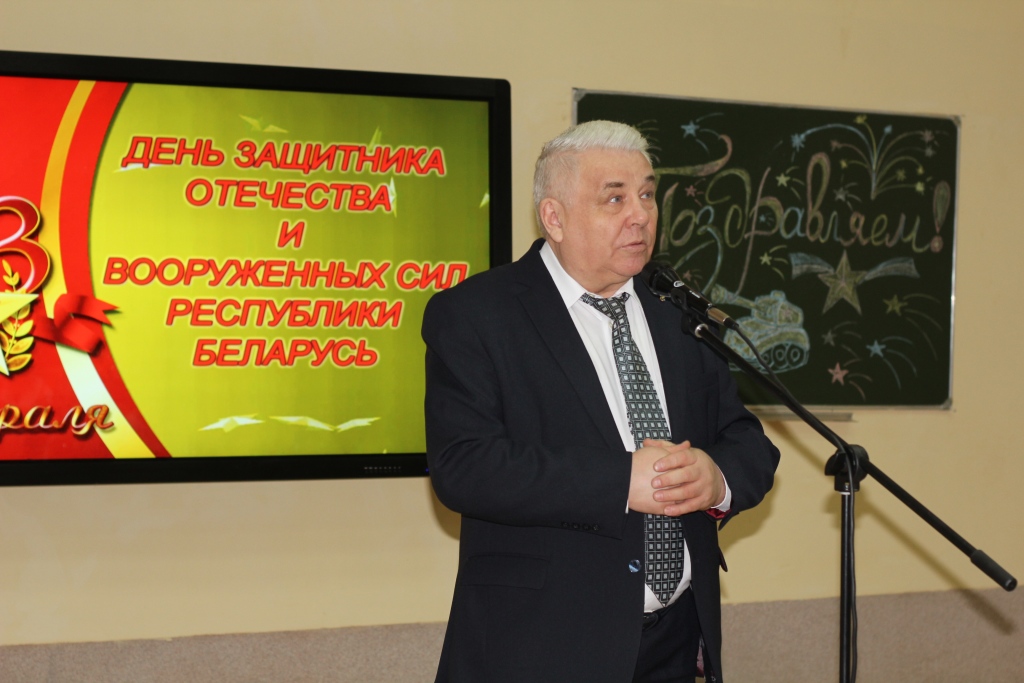 Поздравить коллектив на сцену был приглашен ректор университета, Заслуженный работник образования Республики Беларусь, доктор биологических наук, профессор Валентин Васильевич Валетов. В этот значимый и торжественный день слова поздравлений и благодарности Валентин Васильевич адресовал тем, кто защищал, защищает и будет защищать Отчизну, кто верно служит общему делу, защищает и приумножает профессиональные достижения нашего учебного заведения и страны в целом. Тем, кто стоит на страже интересов государства и профессионально выполняет работу, направленную на процветание нашей страны.