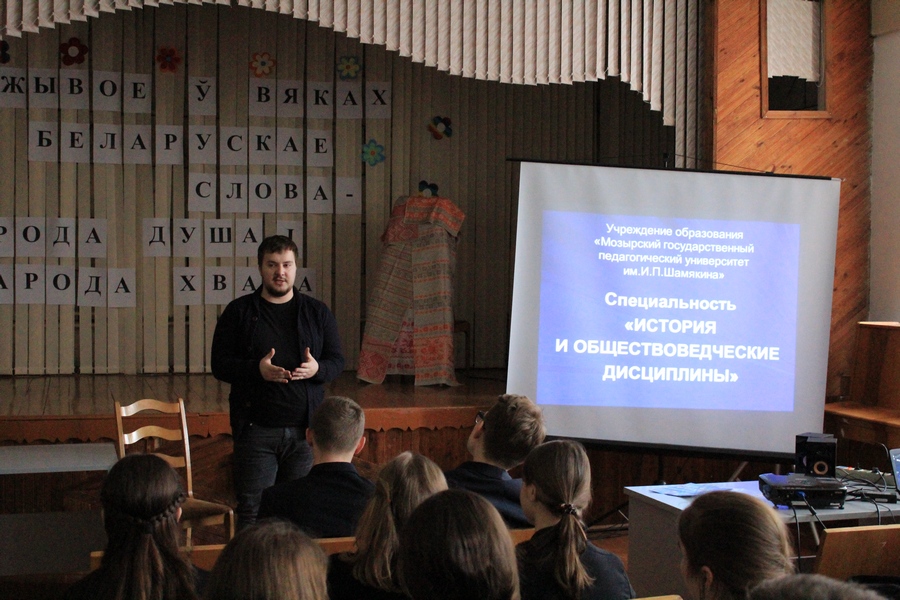 Студенты рассказали школьникам о работе СНИЛ, о своих достижениях в области исторической реконструкции, а также о преимуществах получения гуманитарного образования на филологическом факультете МГПУ им. И.П. Шамякина.