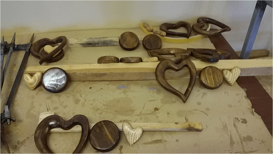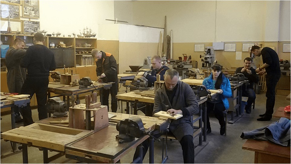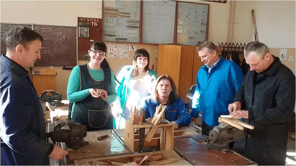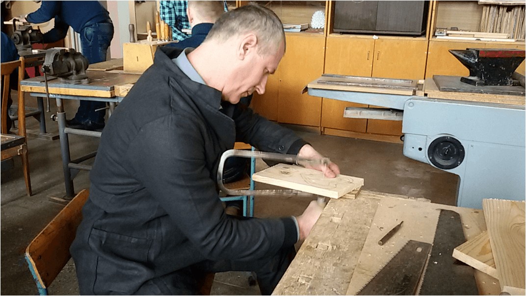 На учебных занятиях по дисциплине «Технология художественной обработки материалов» студенты-выпускники 5 курса дневной и заочной форм получения высшего образования под руководством доцентов кафедры методики технологического образования Астрейко С.Я. и Редькина В.П., а также лаборанта Дудко С.Ф. разрабатывают и изготавливают сувенирные изделия в процессе художественной резьбы (контурной, пропильной, геометрической) различных пород древесины: берёзы, ясеня, клёна, сосны, дуба, ольхи, осины и др.