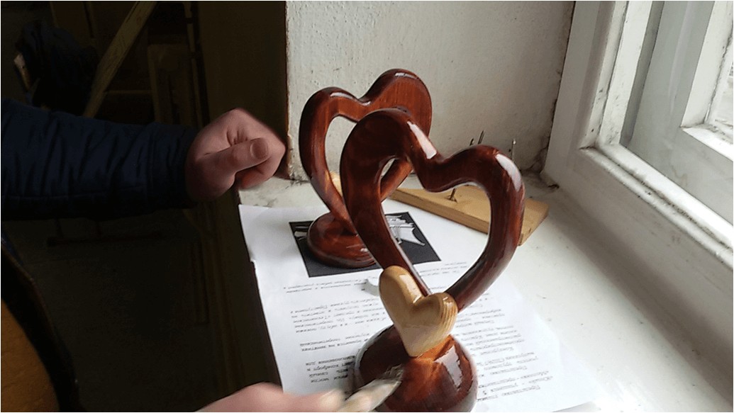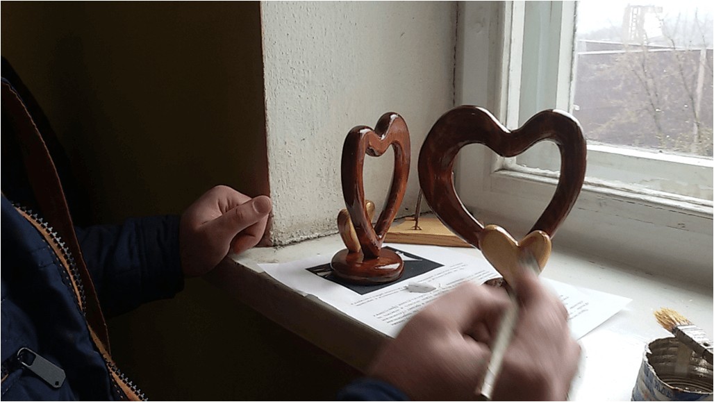 На фотографиях представлен технологический процесс изготовления сувенирного изделия «Сердечки»