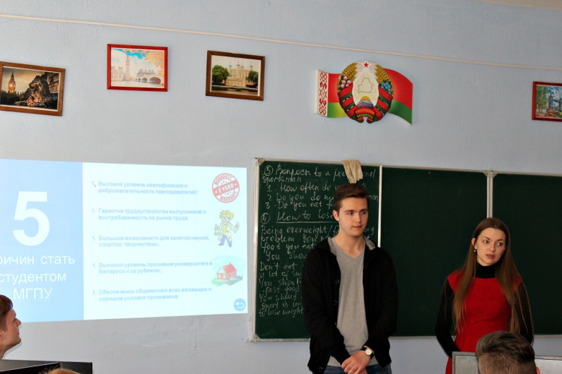 Во время беседы по профориентации студенты рассказали будущим абитуриентам обо всех преимуществах и перспективах учёбы в нашем университете, отразив в презентации все краски студенческой жизни. Школьники продемонстрировали свою заинтересованность, активно задавая множество вопросов о специальностях, факультетах, особенностях учёбы. Особенно значимой для нас была встреча с учащимися ГУО «Средняя школа №2 г. Мозыря», так как ребята изучают немецкий в качестве иностранного языка, а именно в этом году УО МГПУ им. И.П. Шамякина собирается возобновить набор студентов на специальность «Иностранные языки (немецкий, английский)» после двухлетнего перерыва. И мы рады сообщить, что по результатам опроса 4 человека из присутствующих готовятся поступать именно в наш университет на данную специальность.