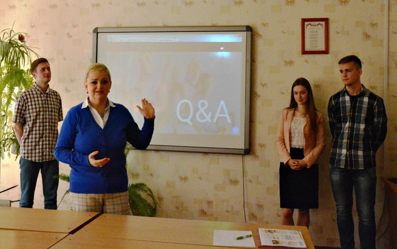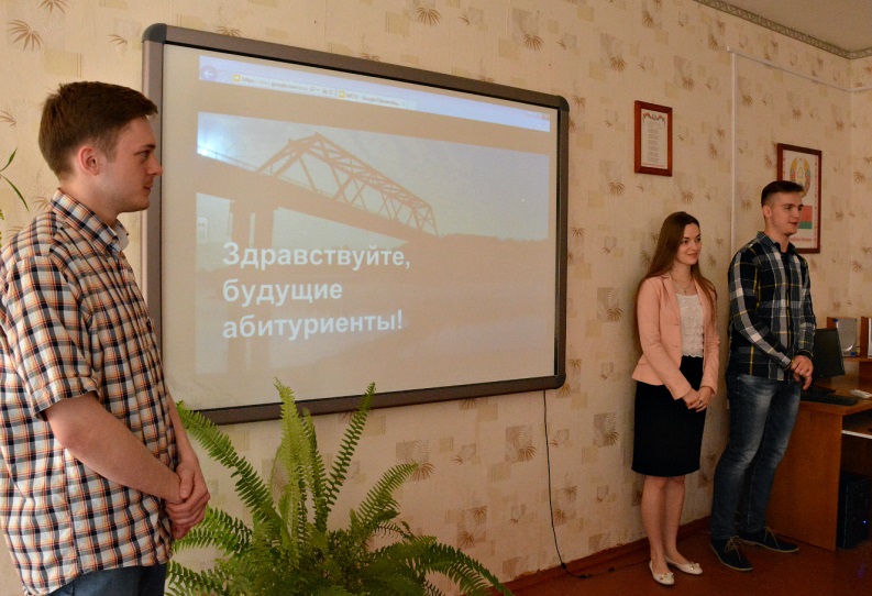 Также наши студенты с удовольствием делились своим опытом с приходящим студенческим поколением, рассказывая, как устроен университет, какие отношения существуют между студентами и преподавателями, обсуждали размер стипендии и возможности поощрения студентов, а также сферы деятельности и реализации возможностей. Учащихся пригласили посетить университет и предложили познакомиться с преподавателями, посмотреть аудитории и оборудование и, конечно же, проникнуться особой студенческой атмосферой, которая, возможно, будет частью их жизни в течение следующих четырёх лет. Ребята заверили нас в том, что с удовольствием придут на экскурсию в наш университет.
