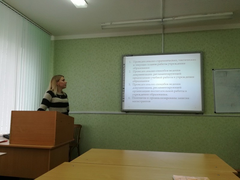 В целом, по мнению магистрантов, практика прошла успешно. Она способствовала формированию умений и навыков в педагогической, научной и управленческой деятельности, помогла в написании магистерских исследований, дала возможность познакомиться со спецификой работы в вузе, а также апробировать разработанные материалы на практике.