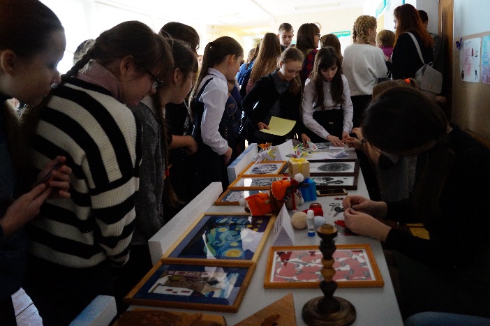 Студенты специальностей «Обслуживающий труд и изобразительное искусство» и «Технический труд и предпринимательство» представили выставку творческих работ по техническому творчеству, изобразительному и декоративно-прикладному искусств, а также мастер-классы «Нетканый гобелен» и «Бумажная пластика «Буслик»». Представленная экспозиция изделий и мастер-классы продемонстрировали разнообразие творческих интересов студентов и возможности мастерских и лабораторий факультета.