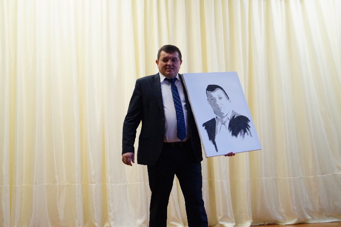 Студенты факультета подготовили для старшеклассников творческое выступление, а студентка 1 курса Яншина Ангелина продемонстрировала свои способности и выполнила портрет директора школы Хомутовского В.В.