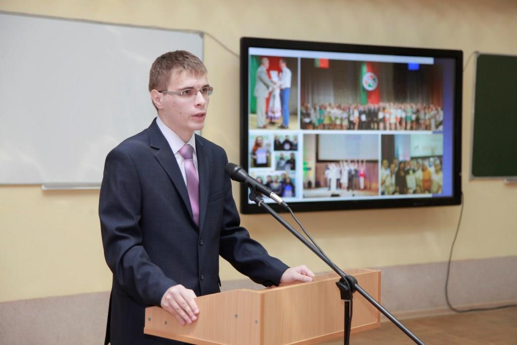 От имени одаренных учащихся университета с Днем белорусской науки преподавателей поздравил студент филологического факультета Николай Артюшко, стипендиат Специального фонда Президента Республики Беларусь по поддержке одаренных учащихся и студентов.