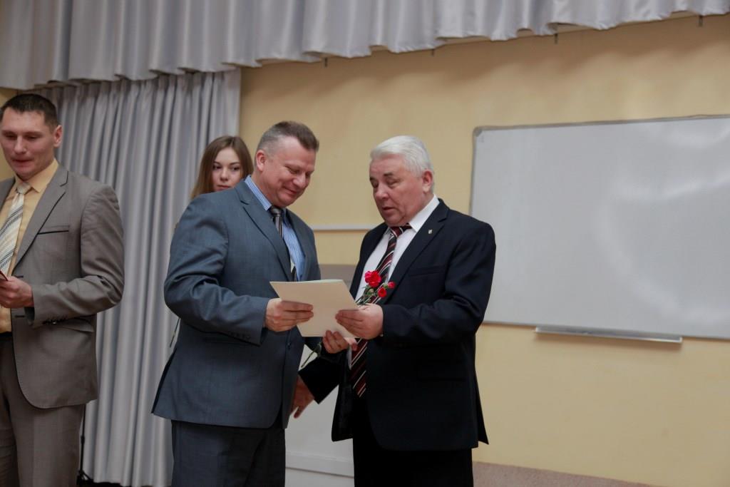 За значительный личный вклад в развитие науки и инновационной деятельности и в связи с Днем белорусской науки В.В. Валетов вручил Почетную грамоту Министерства образования Республики Беларусь проректору по воспитательной работе Сергею Николаевичу ЩУРУ, кандидату педагогических наук, доценту.