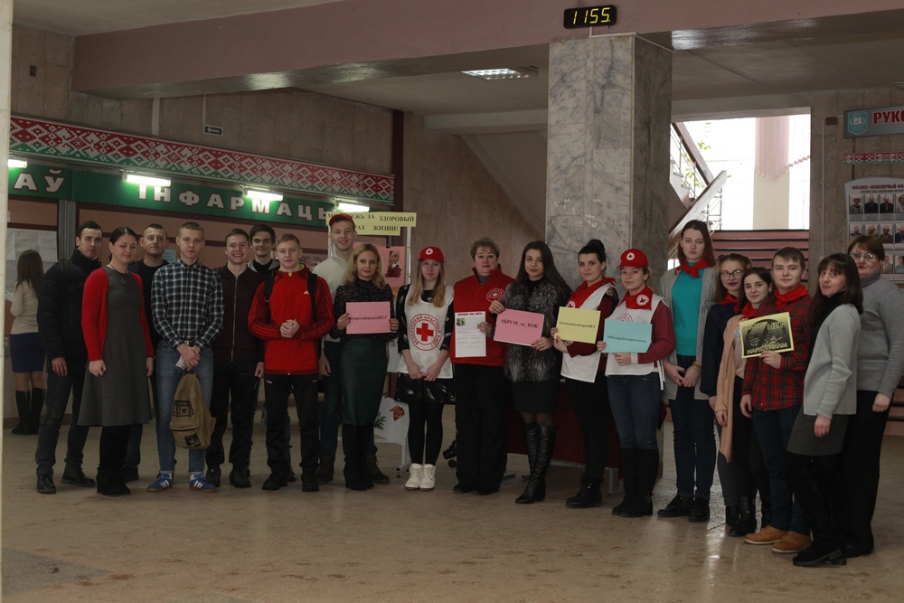 1 марта в холле главного корпуса университета сотрудниками отдела по воспитательной работе был проведен Марафон профилактики "ЗАВИСИМОСТЬ ЦЕНОЙ В ЖИЗНЬ". В мероприятии приняли участие не только сотрудники и студенты университета, но и представители общественных организаций: Мозырский районный комитет ОО «БРСМ», Мозырская районная организация БОКК, а также сотрудники отдела общественного здоровья государственного учреждения «Мозырский зональный центр гигиены и эпидемиологии».