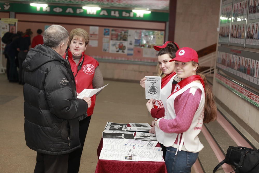 Мариненко Е.Н., председатель Мозырской РО БОКК с волонтерами раздавали информационные листовки и буклеты по данной тематике.