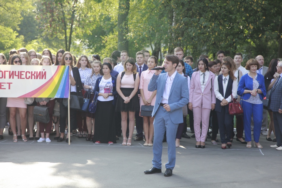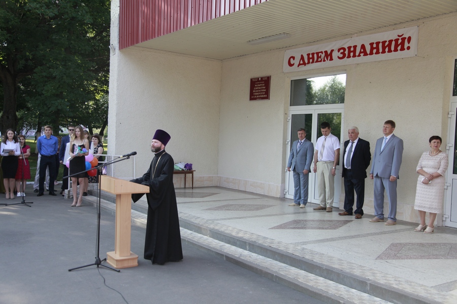 С приветственным словом и поздравлениями к присутствующим обратился ректор университета, Заслуженный работник образования, доктор биологических наук, Почетный профессор университета В.В.Валетов. Валентин Васильевич поздравил педагогический коллектив с началом учебного года, призвал студентов с энтузиазмом и настойчивостью постигать секреты профессионального мастерства, активно участвовать в научной, культурной и спортивной жизни университета.