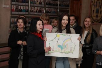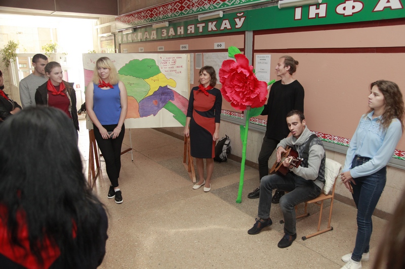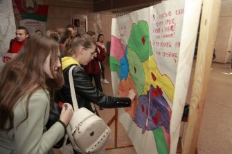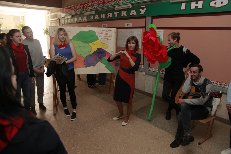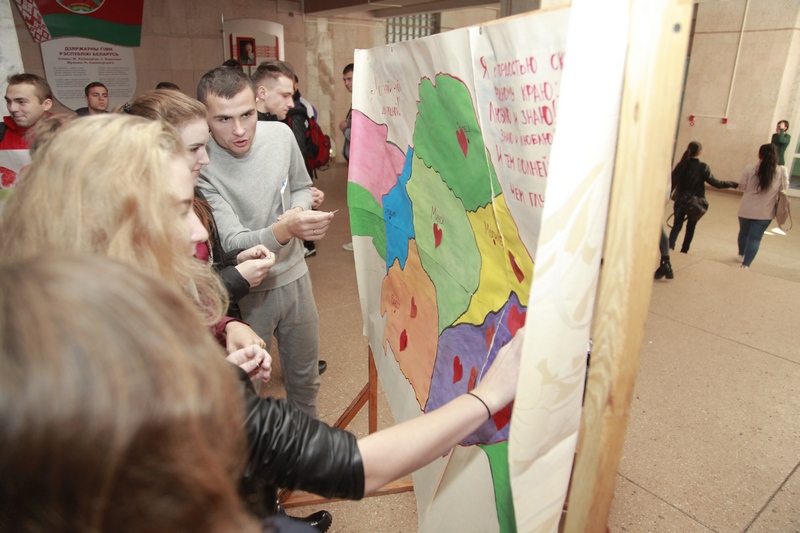 Третий этап – проведение акции в холле главного корпуса (ответственный – заместитель декана по воспитательной работе Ничипорко Н.Н.). Студенты Зборовская Юлия, Здрок Яна, Мартинович Юлия представили стенд с белорусскими национальными костюмами. Студенты Супрунчик Александр и Чечко Ольга исполнили песню «Моя Родина». Затем студенты и преподаватели на карту Беларуси наклеили сердечки с названием места, которое они считают малой Родиной. Участники акции проявили слаженность работы команд. После проведения акции все присутствующие убедились в том, что в нашем университете обучаются ребята из разных уголков нашей страны, и каждый из них любит и ценит свою малую родину.