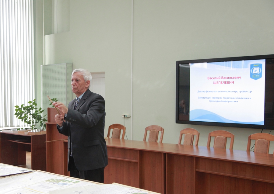 Далее слово было предоставлено научному руководителю научной школы, заведующему кафедрой теоретической физики и прикладной информатики, доктору физико-математических наук, профессору Шепелевичу Василию Васильевичу.
