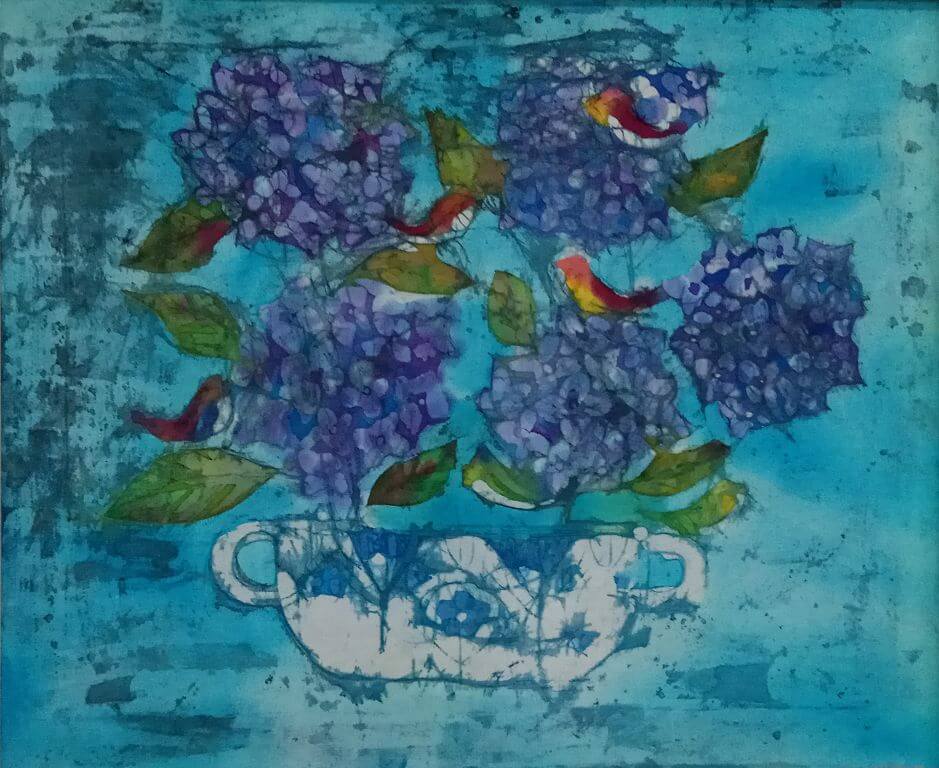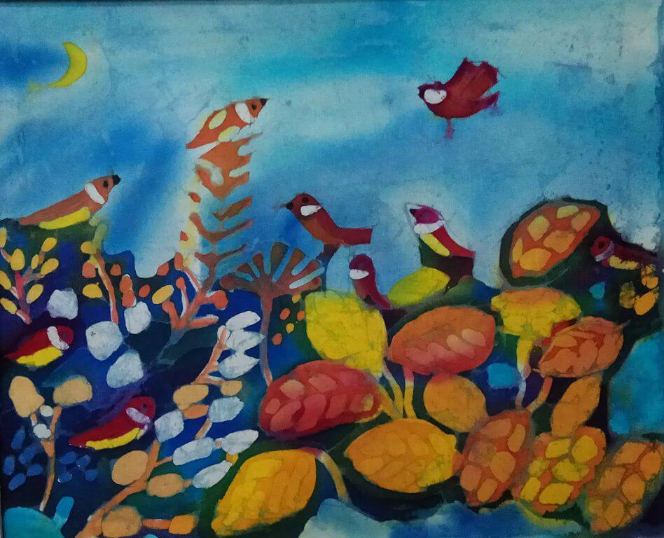 - Тушинская Дарья «Птички» 50х60, горячий батик