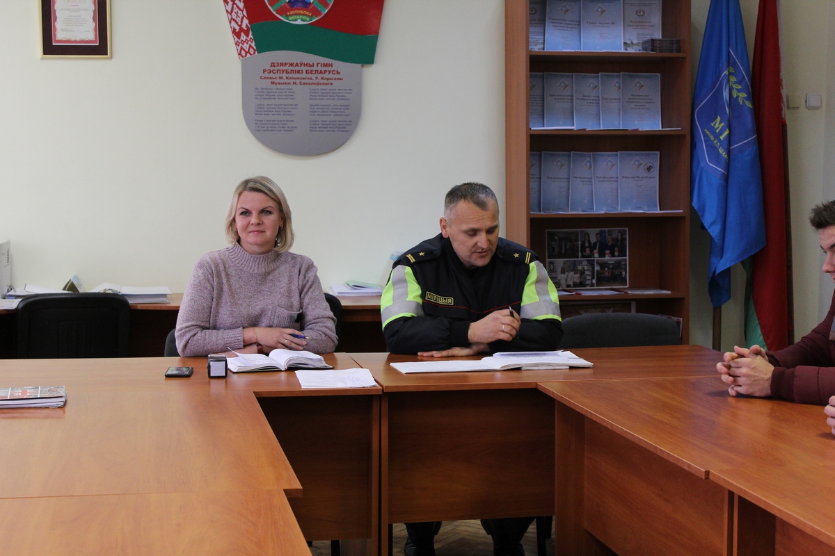 07.10.2019 со студентами факультета физической культуры года была проведена информационная встреча на тему «Соблюдение правил дорожного движения» с участием командира взвода ДПС ОГАИ Мозырского РОВД Усом Н.А.
