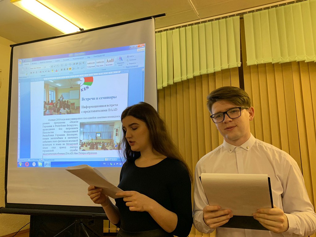 Студенты продемонстрировали блестящее знание иностранных языков и свои творческие способности: Лахманкова Анастасия исполнила песни на английском и немецком языках, а Поклонский Илья прочел стихи Г. Гейне.
