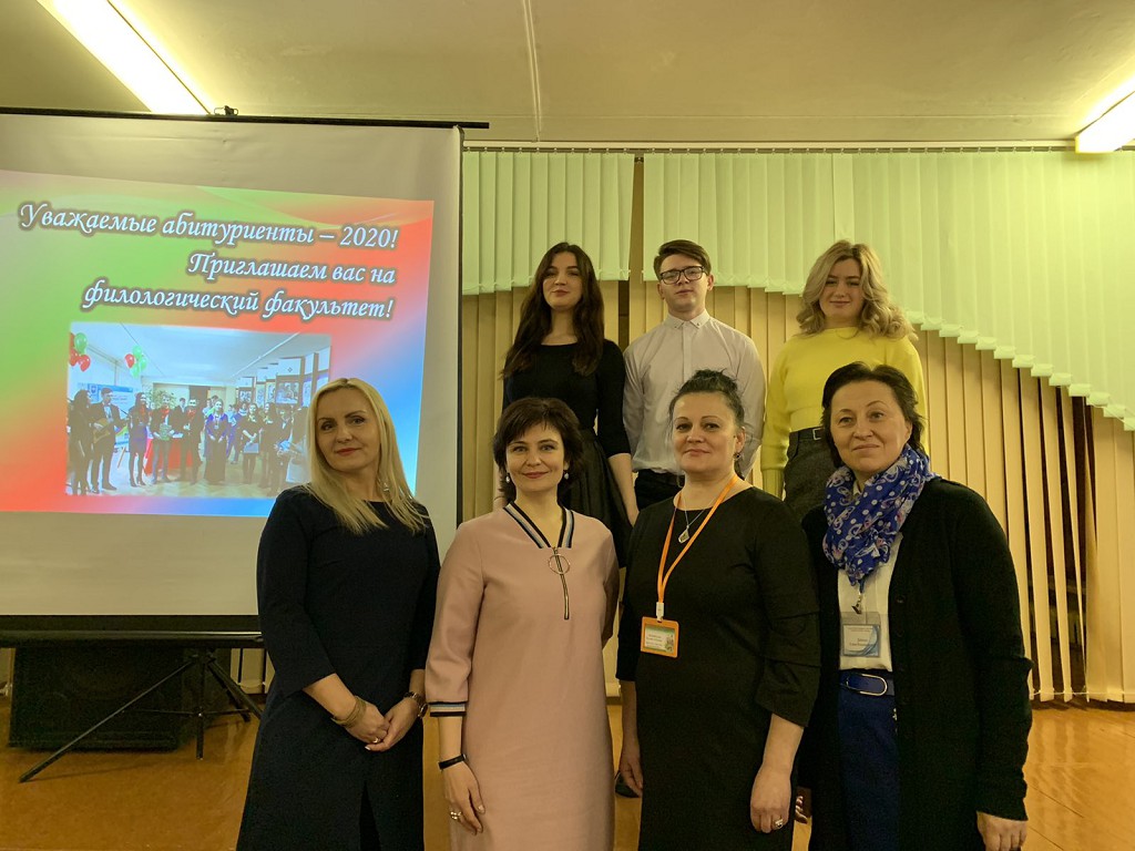 Все больше выпускников решают связать свою будущую профессиональную деятельность с иностранными языками. О своем правильном выборе рассказали студенты специальностей «Иностранные языки (английский, немецкий)» и «Иностранные языки (немецкий, английский)» Лахманкова А., Поклонский И., Зизюк А., Капица Н. Ими были подготовлены презентации об университете, о филологическом факультете и его специальностях.