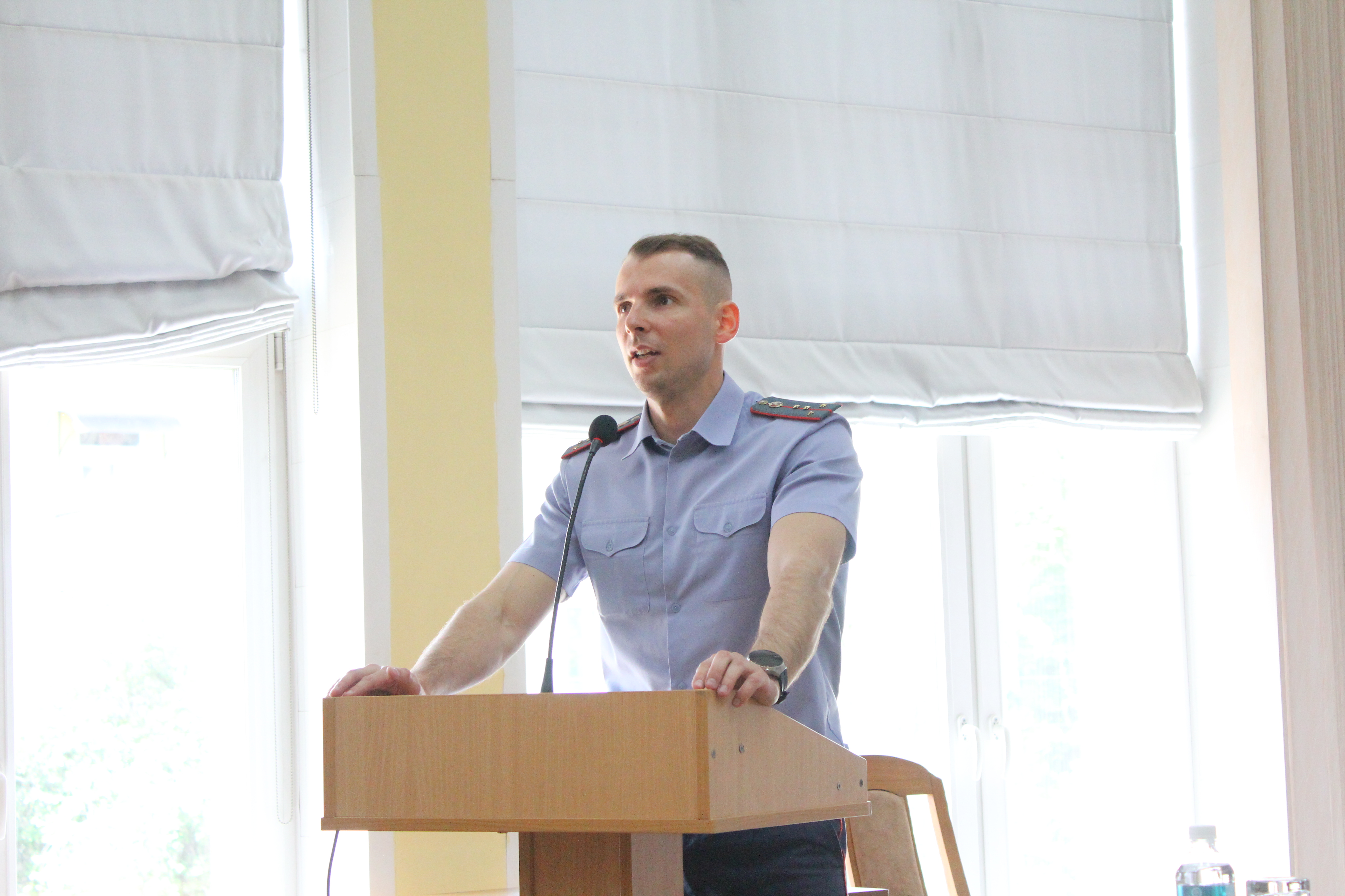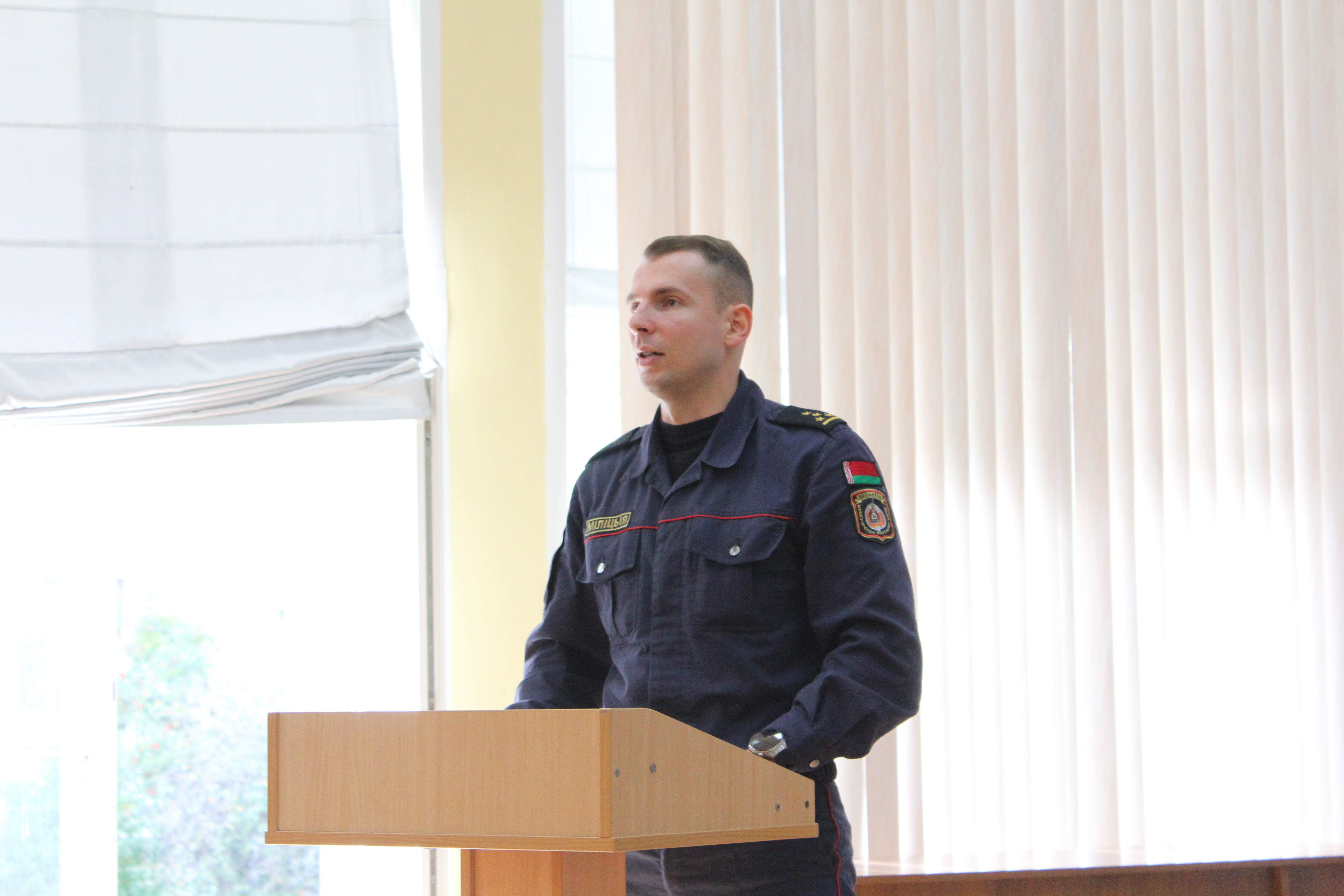 Перед студентами выступили Сергей Николаевич Щур, проректор по идеологической и воспитательной работе, Александр Викторович Витченко, начальник инспекции по делам несовершеннолетних Мозырского РОВД, и Наталья Николаевна Михед, врач психиатр-нарколог, заведующий диспансерным отделением Мозырского психоневрологического диспансера.