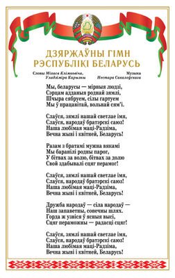 симметрично с двух сторон лестницы - текст гимна Беларуси и карта страны;