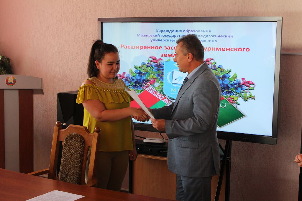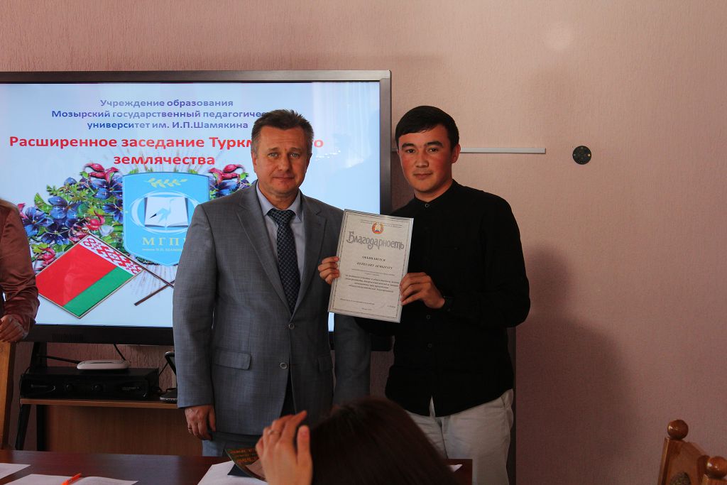 студентка технолого-биологического факультета 4 курс, 2 группа, председатель Туркменского землячества в общежитии №2. cтудентка физико-инженерного факультета 4 курс, 2 группа заместитель председателя Туркменского землячества в общежитии №2. студент физико-инженерного факультета 4 курс, 2 группа, председатель Туркменского землячества в общежитии №3. Актив Туркменского землячества