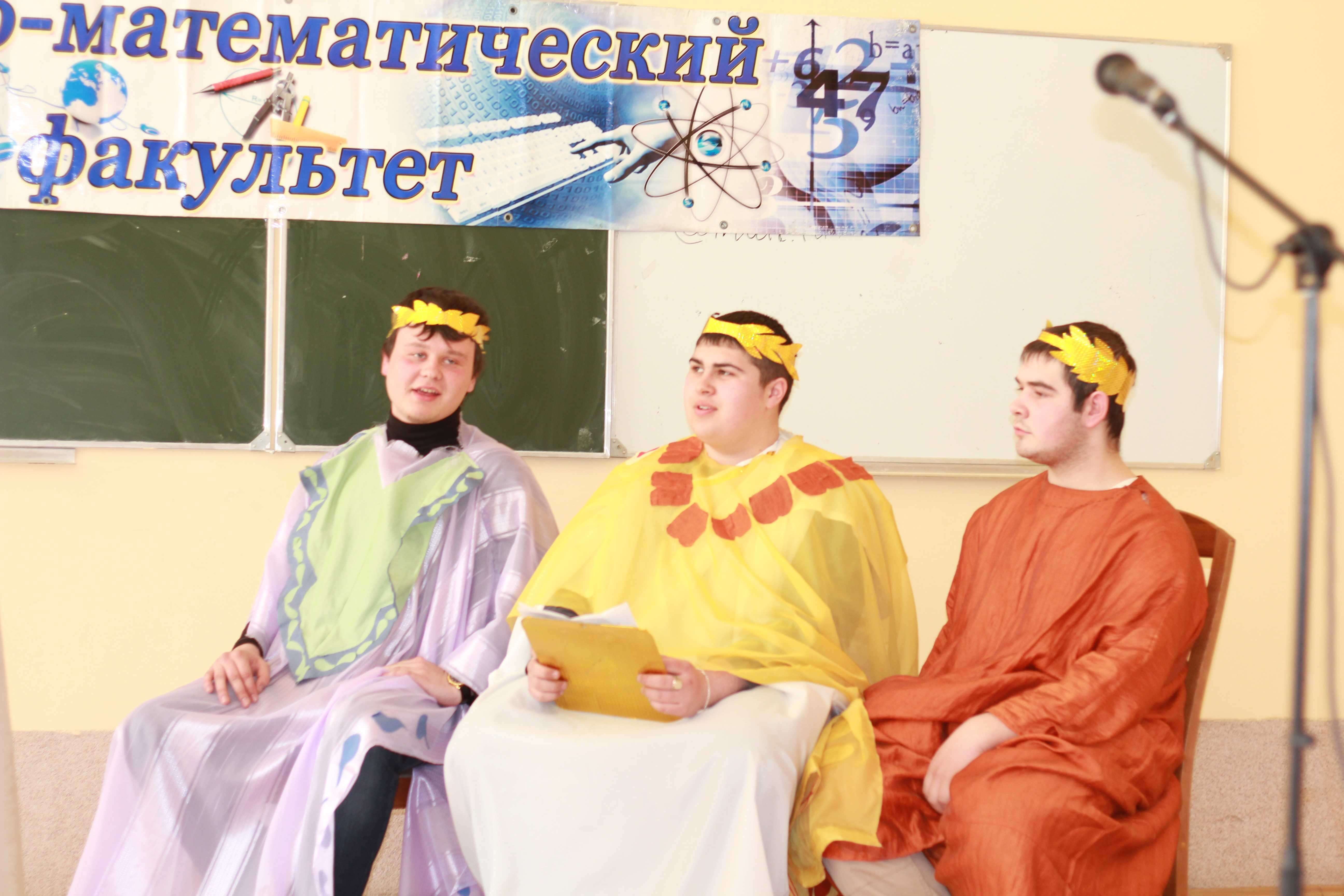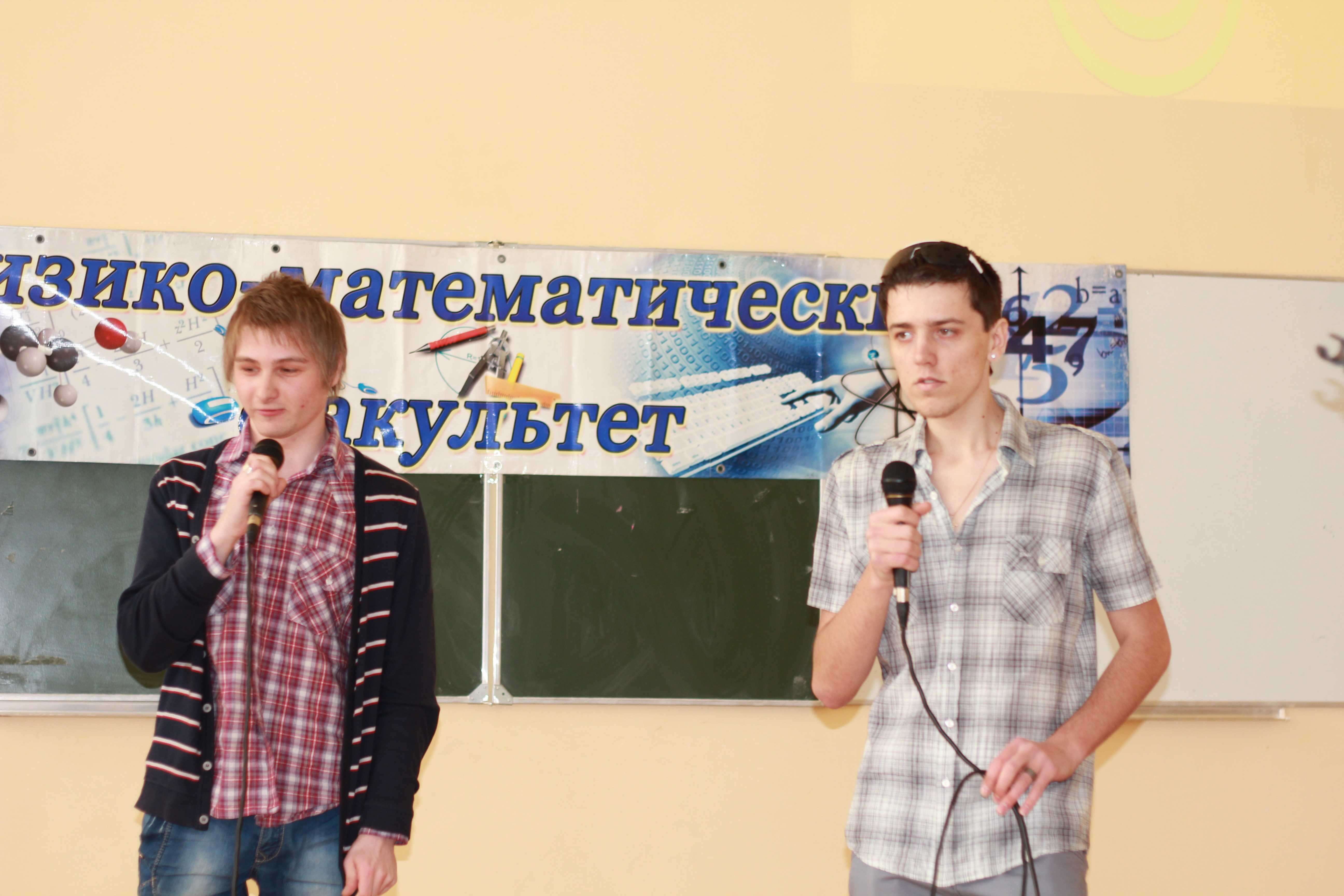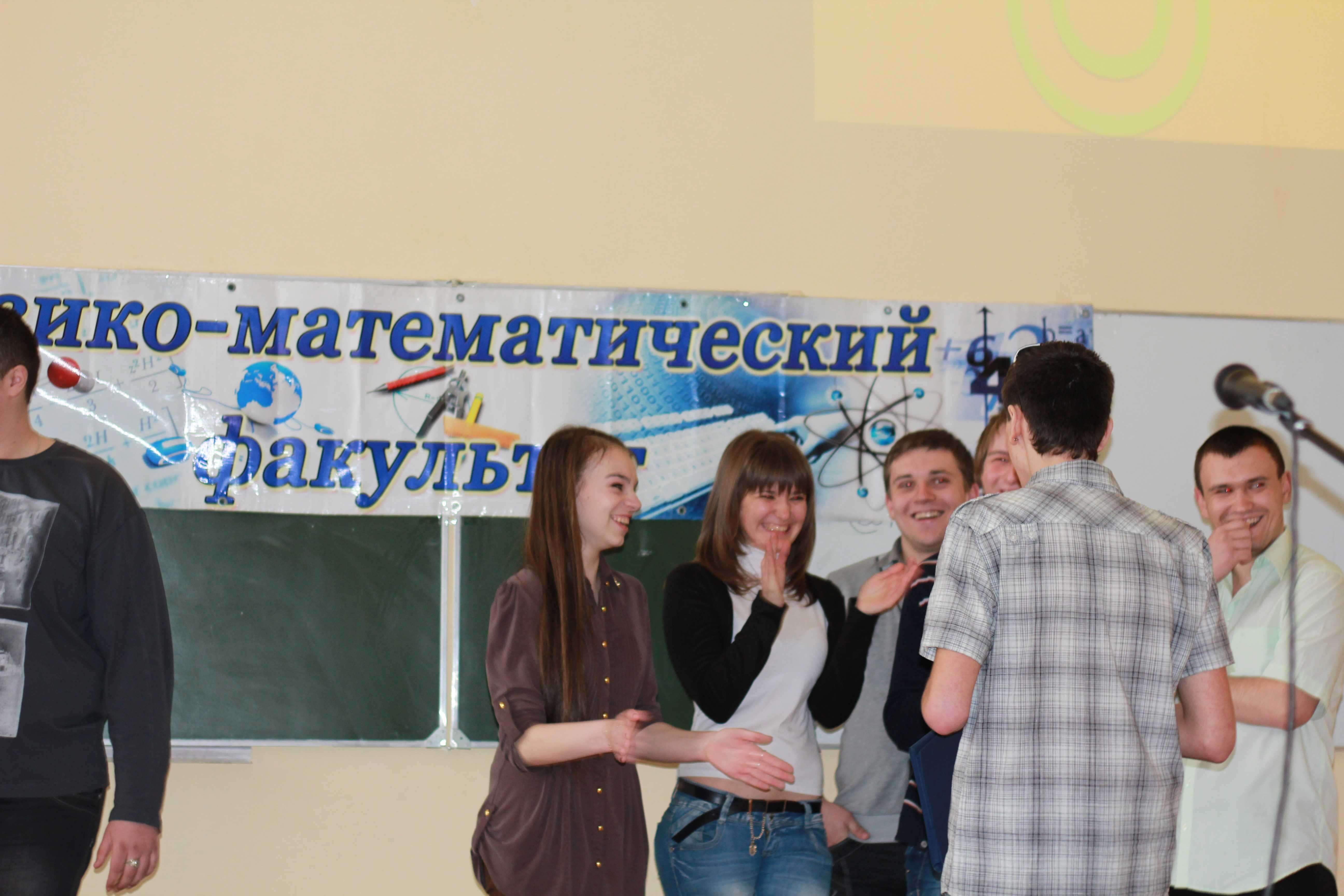 На физико-математическом факультете уже стало традиционным проведение апрельских конкурсно-развлекательных мероприятий. 9 апреля 2013 года на физико-математическом факультете состоялся конкурс веселых и находчивых – «Весенний марафон».