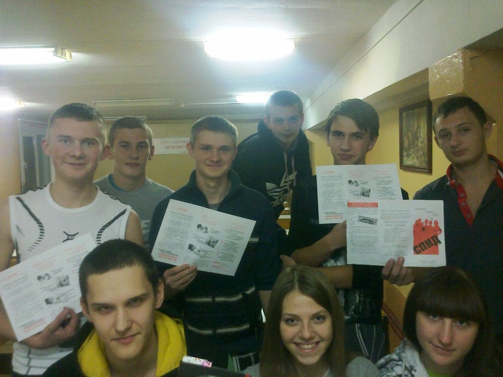 Студенты факультета технологии и физической культуры активно дискутировали на тему сложившейся эпидемиологической ситуации в каждой области Республики Беларусь, узнали, что в настоящее время по оценке ООН ВИЧ/СПИД занимает 5-е место среди причин смертности в мире. Каждому участнику мероприятия была вручена информационная брошюра.