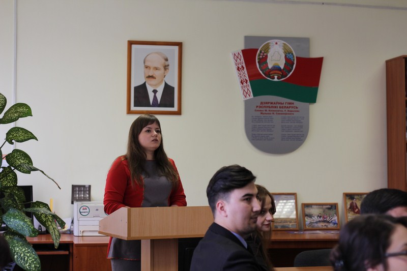 Специалист отдела международных связей Щека Е.Л. рассказала студентам о работе, проводимой отделом международных связей, а сотрудник отделения по гражданству и миграции Мозырского РОВД Лещук О.Г. - о проводимой работе по соблюдению миграционного законодательства.