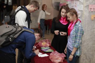 Волонтеры филологического факультета провели анкетирование «На совместимость» и акцию «Позвони родным и близким» с уже заранее приготовленными пожеланиям, поскольку в такие моменты можно не вспомнить самые главные слова.