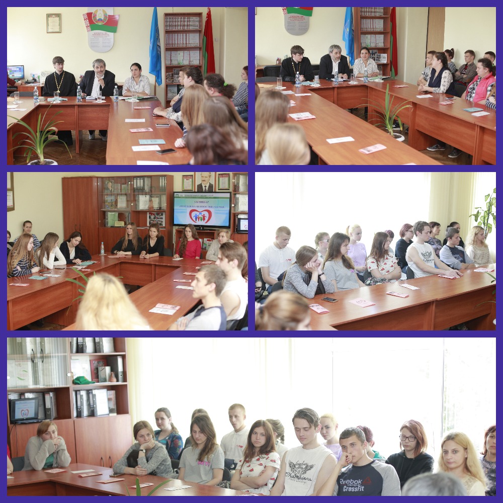16 мая 2018 в университете был организован семинар «Венец всех ценностей - семья». Перед студентами выступали: начальник отдела ЗАГСа Мозырского района Рагимова Н.С., руководитель СППС, психолог гимназии Миневич Р.М. и протоиерей Илья Шить.