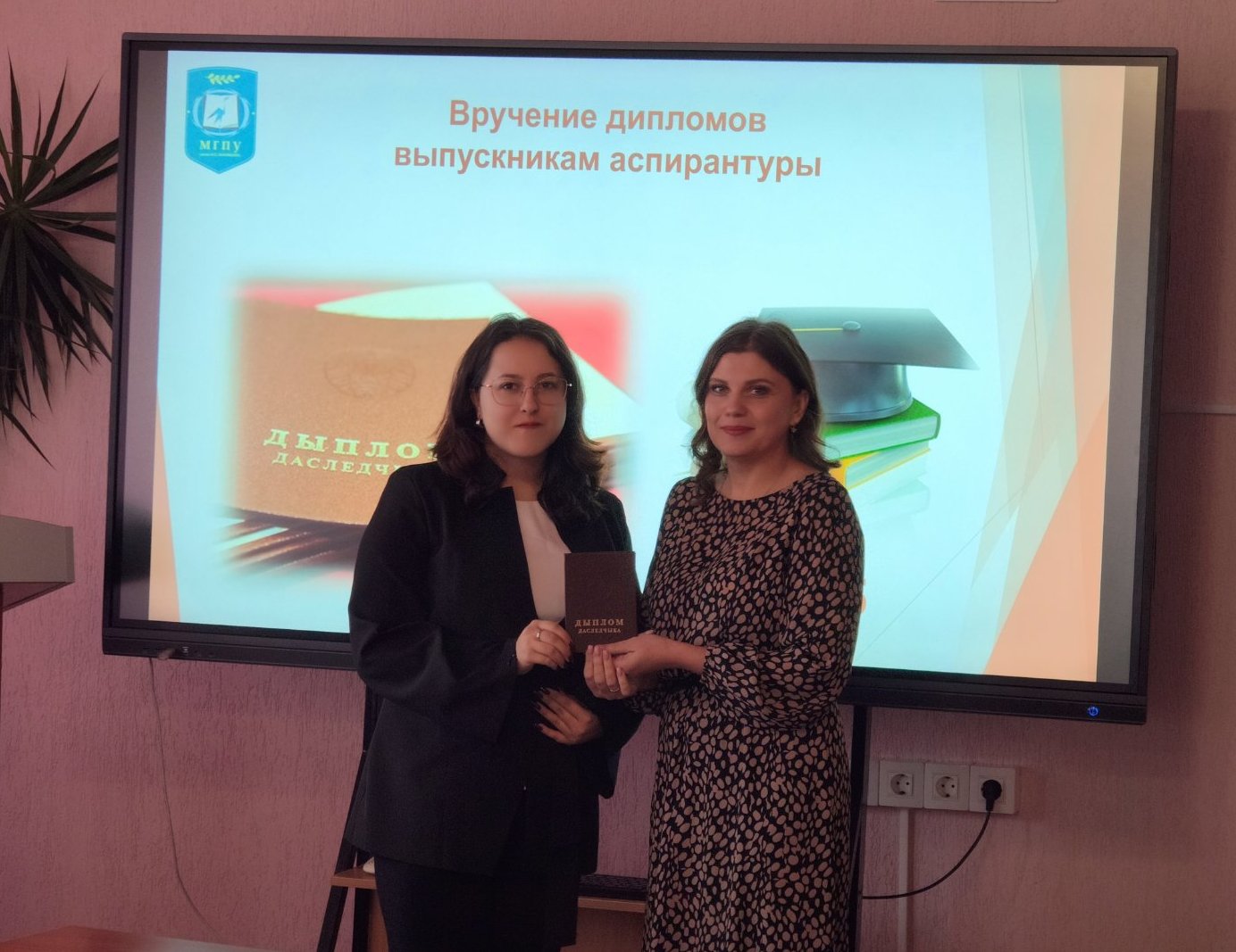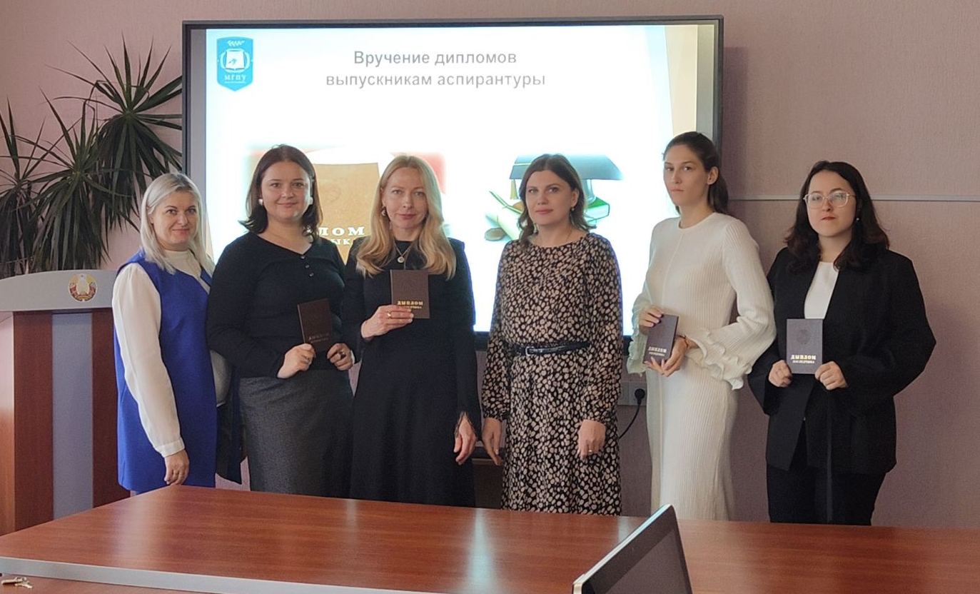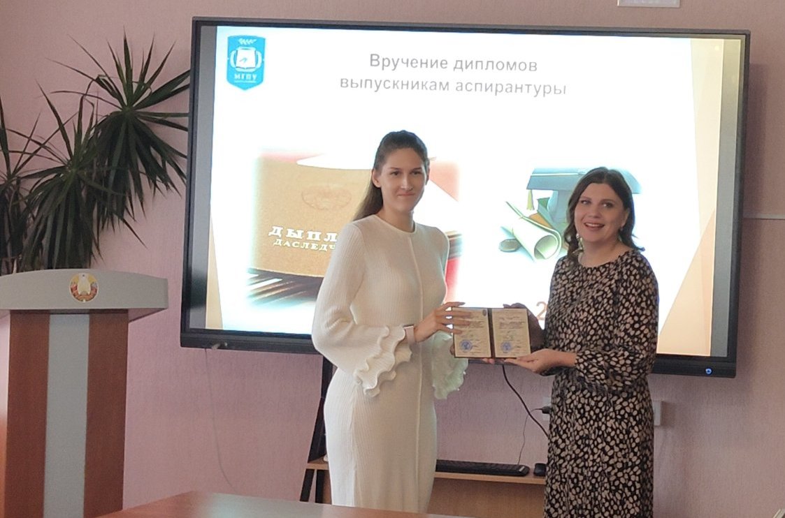 31 октября состоялось вручение дипломов исследователя выпускникам аспирантуры УО МГПУ им. И.П.Шамякина. По итогам работы государственных аттестационных комиссий 4 аспиранта были аттестованы с присуждением научной квалификации «Исследователь»: