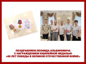 Поздравляем Леонида Альбиновича с награждением юбилейной медалью «80 лет победы в Великой Отечественной войне»